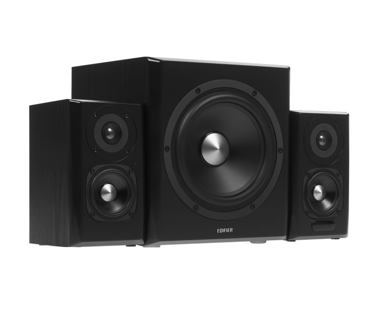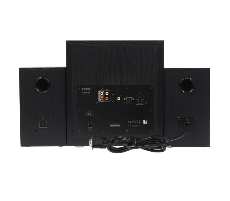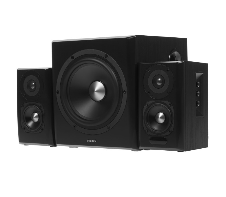 Колонки 2.1 Edifier S351DB − мощная и очень удобная акустическая система, позволяющая получить звук, соответствующий формату 2.1. Она состоит из трех компонентов − активного сабвуфера и двух сателлистов, выполненных в виде фазоинвертора из MDF. Использование такого материала обеспечивает объемное звучание, он исключает резонанс звука, гарантируя чистое воспроизведение треков. Мощность системы составляет 150 Вт: показатель мощности сабвуфера соответствует 70 Вт, а мощность колонок равна 2x40 Вт.