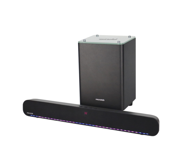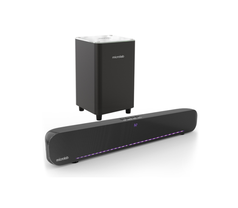 Microlab Rockbar500 - это звуковая панель с трехпозиционным переходом и 7-цветными светодиодными лампами. Он обладает уникальными внешний вид, звук HiFi и красочные светодиодные эффекты подарят вам экстраординарные впечатления, когда вы слушаете музыку, смотрите фильм или играете в игры.