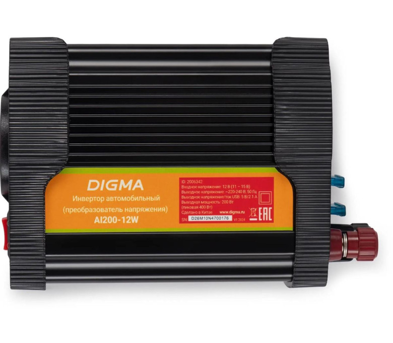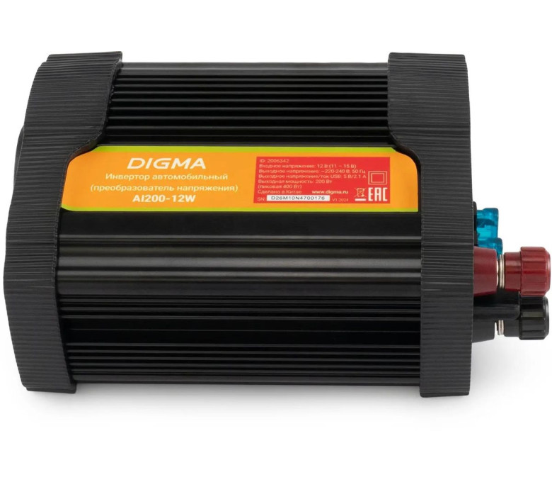 Автомобильный инвертор Digma AI200-12W 200Вт