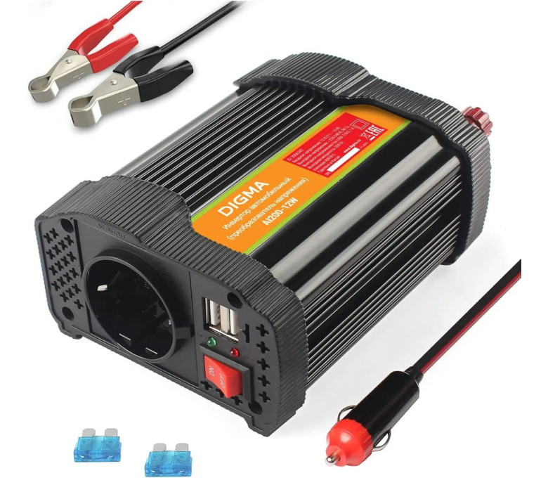 Автоинвертор Digma AI200-12W — компактное и функциональное устройство, которое преобразует напряжение 12 В постоянного тока (от автомобильного аккумулятора или прикуривателя) в стандартное сетевое напряжение 220 В переменного тока. Он предназначен для подключения различных электрических приборов в автомобиле, что особенно удобно в дороге, на отдыхе или при отключении электричества.