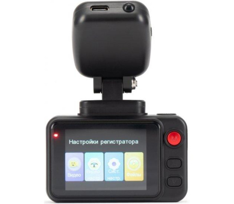 Видеорегистратор крепится к лобовому стеклу с помощью скотча 3М. Для настройки положения прибора используется поворотное крепление. Регистратор фиксируется на кронштейне магнитом. В модели реализован AV-вход для подключения камеры заднего вида. Устройство поддерживает напряжение бортовой сети 12 и 24 В.