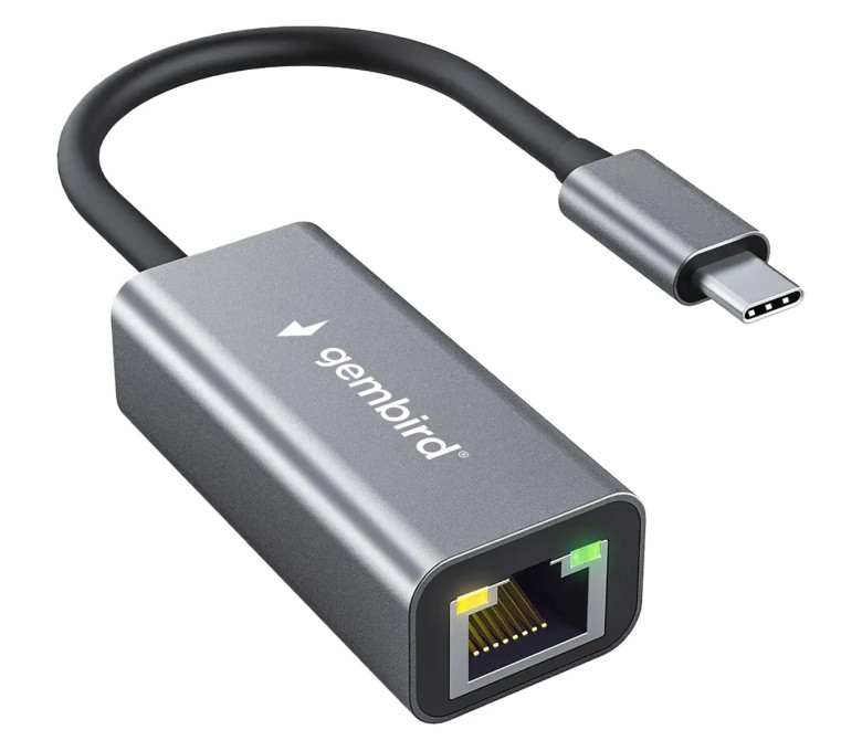 Проводной сетевой Type-C LAN адаптер Gembird NIC-U8, RJ45 100/1000Mbps, USB 3.0, алюминий