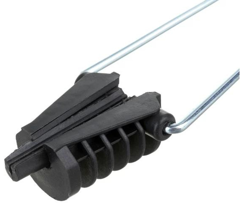 Зажим клиновидный для самонесущих ВО кабелей круглого сечения диаметром от 5 до 7мм, а так же для кабелей с вынесенным силовым элементов (проволока, трос или стеклопластиковый пруток).
