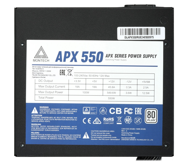 Блок питания MONTECH APX 550W (XWYA11-550W) соответствует классу энергоэффективности 80 PLUS Standard. Коэффициент полезного действия устройства повышает активный корректор коэффициента мощности. Модель поддерживает наиболее востребованные технологии защиты – OCP, OPP, OTP, OVP, SCP и UVP.