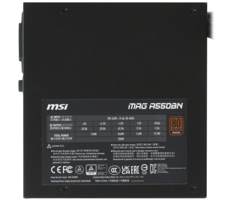 Блок питания 550W MSI MAG A550BN, 80+ Bronze