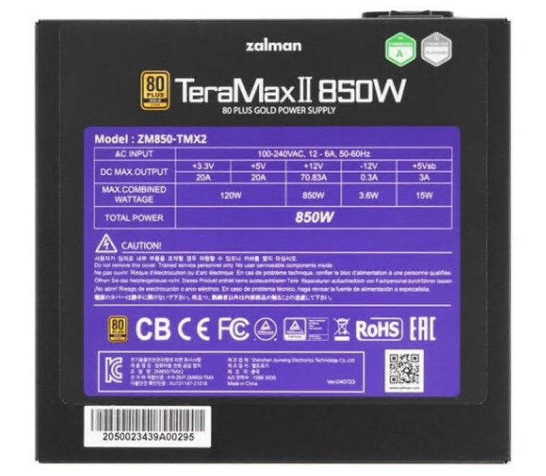 Блок питания 850W Zalman ZM850-TMX2SE, 80+ Gold, модульный