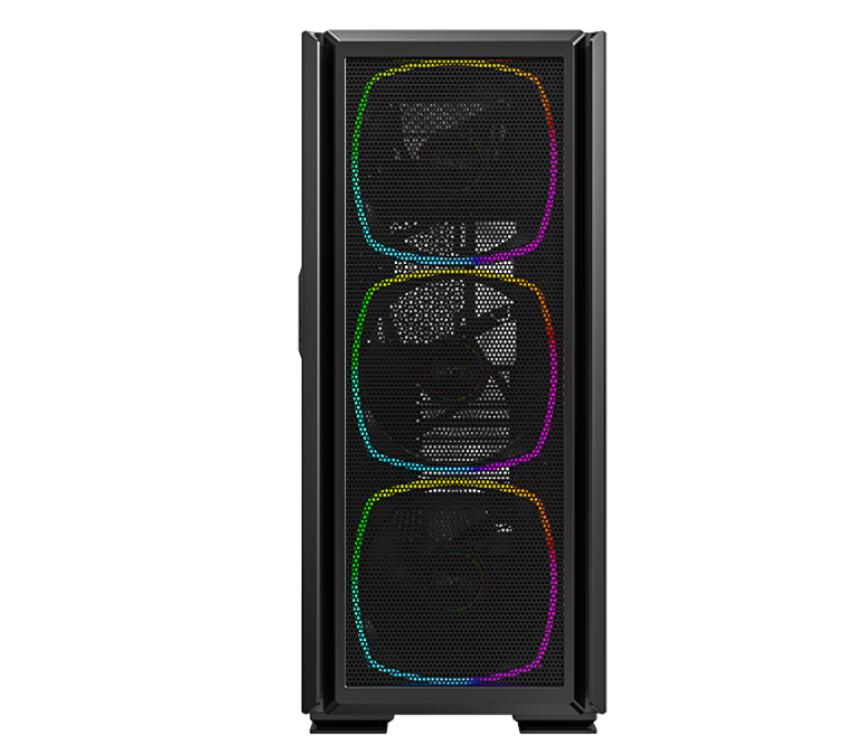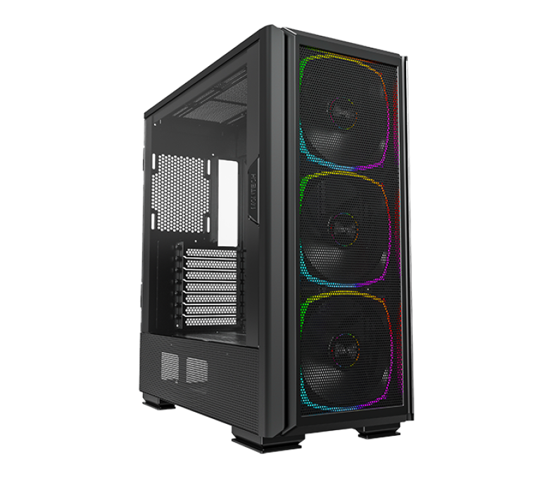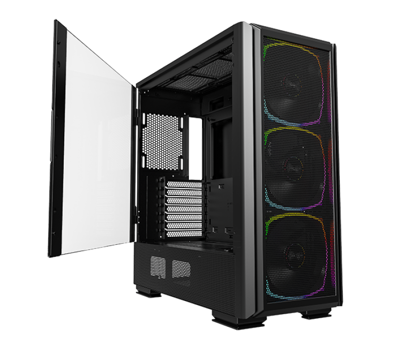 Корпус Montech SKY TWO GX с эффектным дизайном оснащен стеклянной панелью сбоку. Расположение металлических сеток по всему периметру улучшает эффективность обдува. Модель идет в комплекте с 3 ARGB вентиляторами по 140 мм. Специальные места позволяют устанавливать водяное охлаждение с радиаторами до 360 мм.