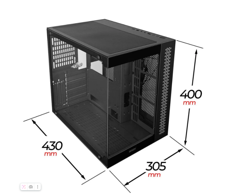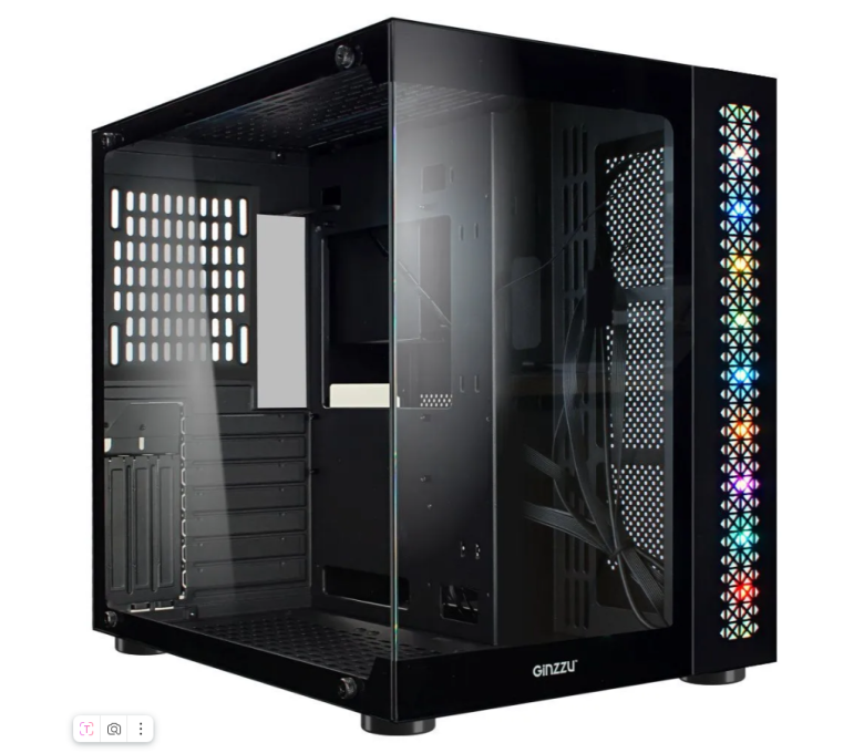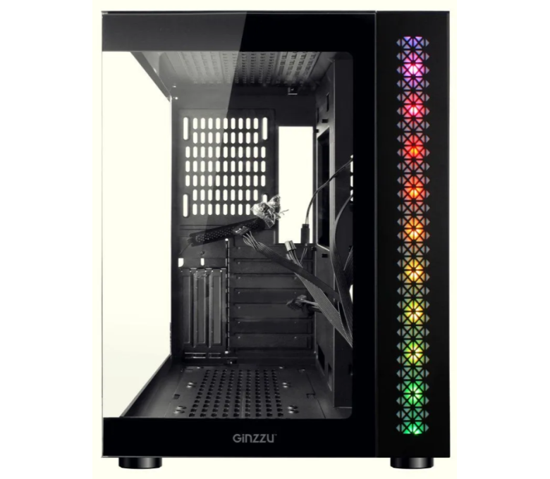 Корпус Ginzzu V501 поддерживает установку радиаторов водяного охлаждения до 360 мм сверху и сбоку. Возможность установки до 10 вентиляторов охлаждения 120 мм. Фильтра забора воздуха на магните сверху, фильтр снизу в виде сетки. Съемная корзина для HDD, кабельные каналы для укладки проводов. Место для блока питания стандарта ATX в отдельном воздуховоде до 24 см в глубину. RGB подсветка с питанием от БП напрямую, тип разъема Molex Очень просторный корпус исполнения шасси из стали 0,6 мм. Передняя панель из закаленного стекла. Боковая панель из закаленного стекла на винтах.