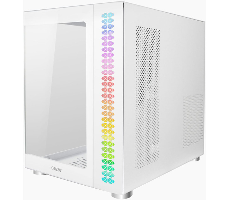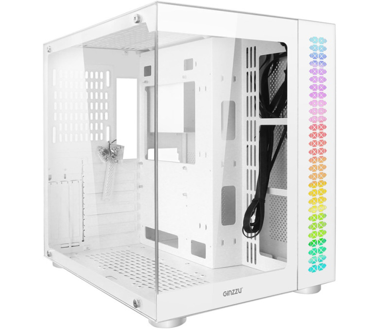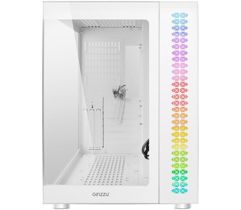 Корпус Ginzzu V501 поддерживает установку радиаторов водяного охлаждения до 360 мм сверху и сбоку. Возможность установки до 10 вентиляторов охлаждения 120 мм. Фильтра забора воздуха на магните сверху, фильтр снизу в виде сетки. Съемная корзина для HDD, кабельные каналы для укладки проводов. Место для блока питания стандарта ATX в отдельном воздуховоде до 24 см в глубину. RGB подсветка с питанием от БП напрямую, тип разъема Molex Очень просторный корпус исполнения шасси из стали 0,6 мм. Передняя панель из закаленного стекла. Боковая панель из закаленного стекла на винтах.