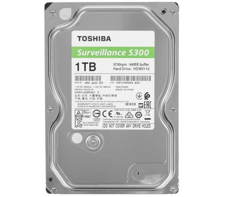 1 ТБ Жесткий диск Toshiba S300 Surveillance [HDWV110UZSVA] благодаря своим особенностям станет отличным выбором для систем видеонаблюдения практически любого класса. Данная модель производится с применением высококачественных компонентов и передовых технологий, после чего проходит многократные тестирования. Благодаря этому накопитель отличается не только высокой производительностью, за счет которой может обеспечить быстрый доступ к файлам, но и надежностью и стабильностью работы, что сделает хранение данных безопасным в любых условиях.