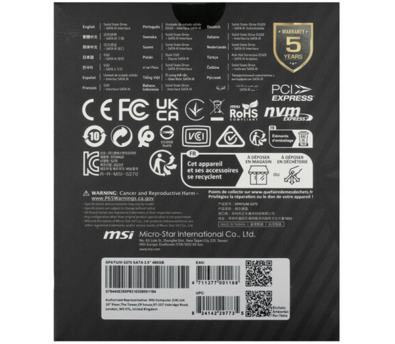 SATA накопитель MSI SPATIUM S270 создан для ускорения настольного или портативного компьютера. Благодаря скорости до 500 Мбайт/сек в режиме чтения он повышает отзывчивость аппаратной платформы на запуск программ и выполнение команд пользователя. Объем 480 ГБ обеспечивает хранение большого объема документов и файлов.
