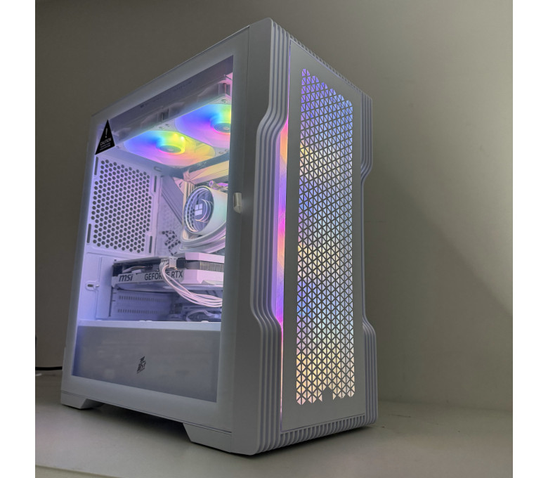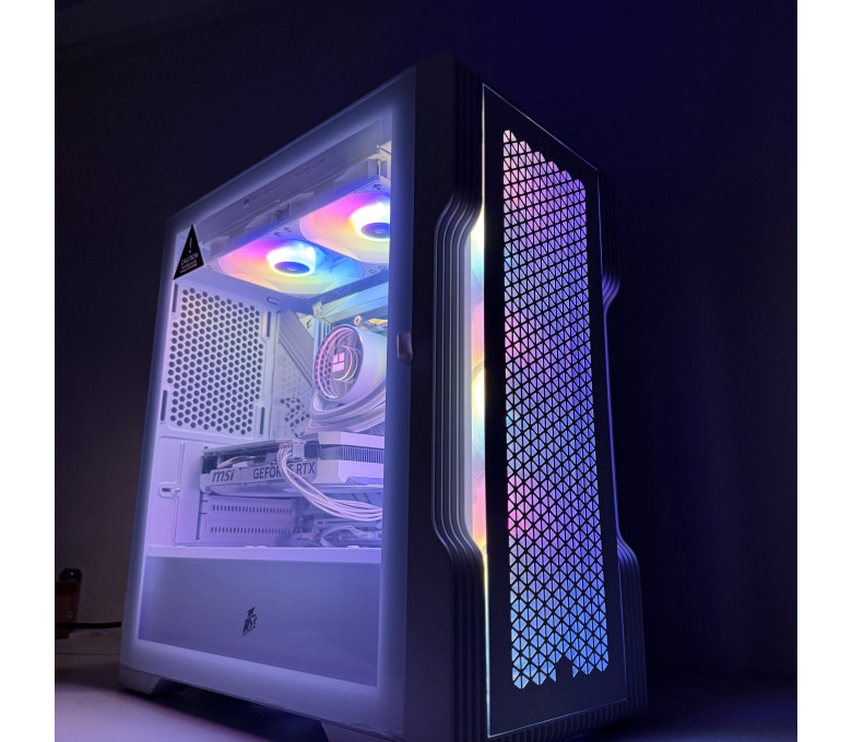 Эстетичный белый игровой системный блок формата mATX с фирменной «снежной» темой: белый корпус и комплектующие с ARGB-подсветкой. Сбалансированная платформа для современных игр в 1080p–1440p и задач контент-креации.