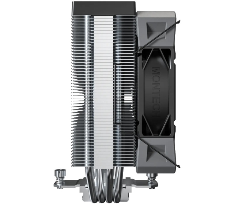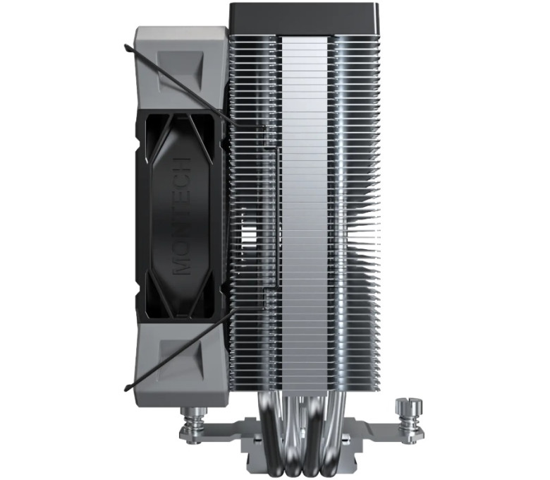Кулер для процессора Montech NX400 оснащен четырьмя эффективными медными трубками и одним вентилятором 120 мм. Мощность рассеивания до 220 Вт гарантирует быстрое охлаждение процессора. Плоское основание с медными трубками ускоряет передачу тепла радиатору, который охлаждает и рассеивает воздух.