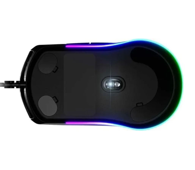 SteelSeries Rival 3 — игровая оптическая проводная мышь чёрного цвета имеет корпус из матового пластика, на котором малозаметны отпечатки пальцев;