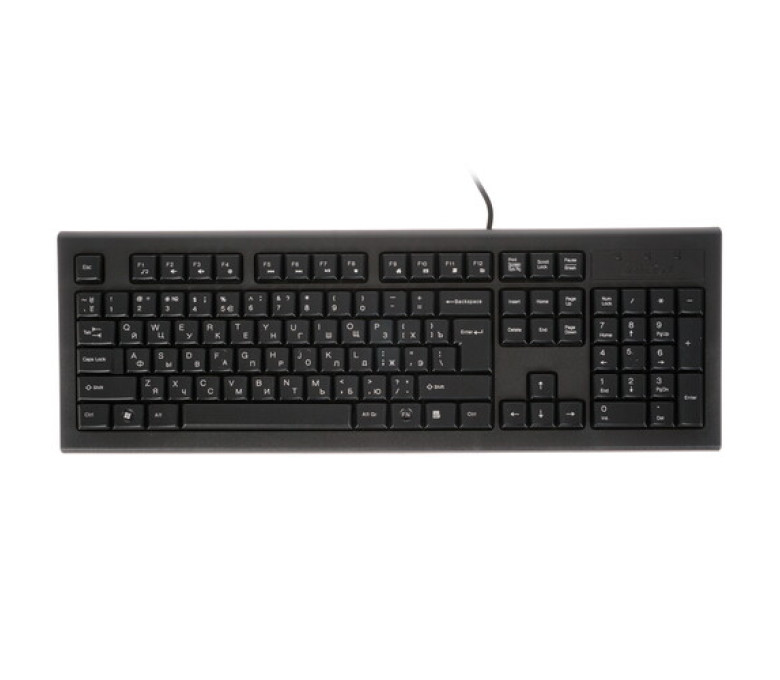 Количество клавиш – 104, есть цифровой блок, это полноразмерная клавиатура. Кнопки мембранного типа. Они выделяются мягким ходом и не сильно шумят при наборе текста. Обеспечивается продолжительный эксплуатационный ресурс.