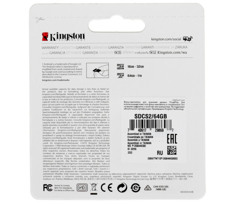 Карта памяти Kingston Canvas Select Plus microSDXC 64 ГБ [SDCS2/64GB] – это надежное хранилище данных, разработанное для устройств под управлением ОС Android. Обладая объемом 64 ГБ, карта памяти позволяет хранить достаточно большое количество разного контента. Класс производительности А1 обеспечивает ускоренную загрузку приложений. Устройство хранения гарантирует высокую производительность для съемки фотографий и видео стандарта FullHD.