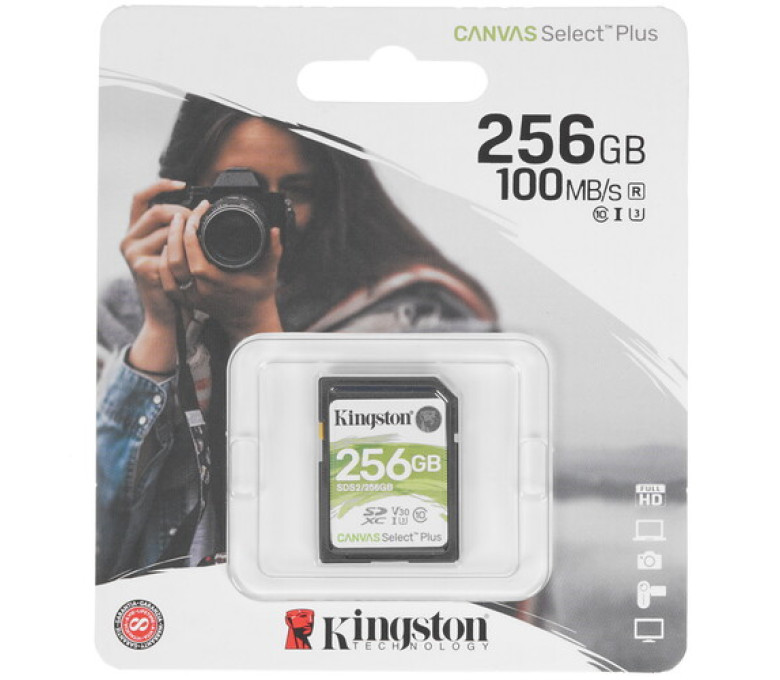 Карта памяти Kingston Canvas Select Plus SDXC 256 ГБ [SDS2/256GB] соответствует классам скорости Class 10 и UHS-I (U3). Скорость чтения может достигать 100 МБ/с. Скорость записи ограничена 85 МБ/с. Карта памяти рассчитана на скоростную фотосъемку и запись видео высокого качества. Упаковка изделия – блистер традиционной конструкции. Использовать карту памяти можно при температуре от -25 до 85 °C.