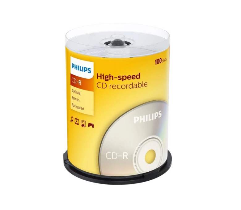 Оптический диск CD-R Philips 700 Mb, 52х, Cake Box (100шт)