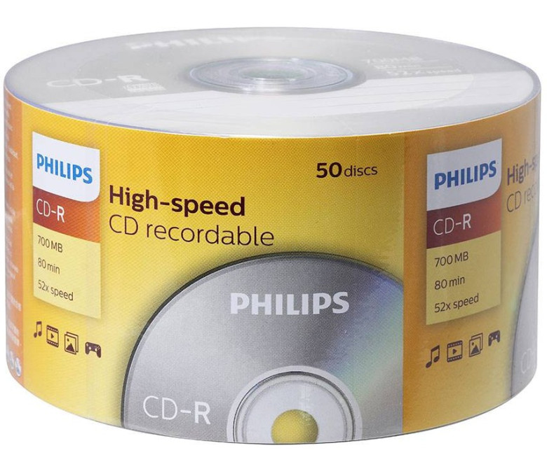 Оптический диск CD-R Philips 700 Mb, 52х, Cake Box (50шт)