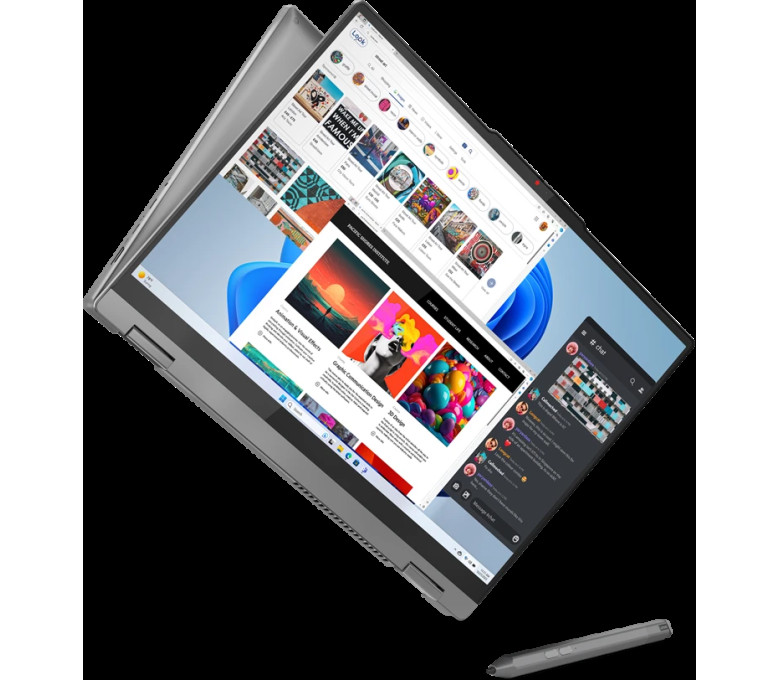 Одной из особенностей данной модели является высококачественный OLED-экран с разрешением 2048x1280 пикселей. Благодаря 100% цветовому охвату DCI-P3 и глянцевой поверхности экрана, изображение на ноутбуке Lenovo IdeaPad 5 2-in-1 16IRU9 (83DU0042RK) выглядит ярким, четким и насыщенным. А функция Touch Screen обеспечивает быструю и удобную навигацию по устройству.