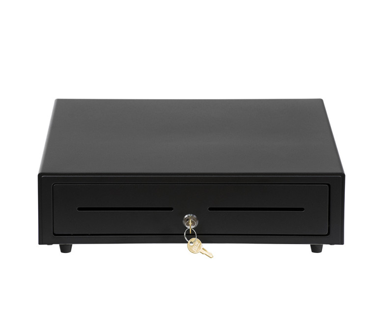 Корпус АТОЛ CD-410 выполнен из металла. В денежном ящике 5 отделений для купюр, 8 ячеек для монет и большое отделение для хранения чеков и счетов. Конструкция денежного ящика позволяет менять ширину отделений для купюр, а отделение для монет может выниматься из денежного ящика. Стальные зажимы для купюр долговечны и надежно фиксируют банкноты.