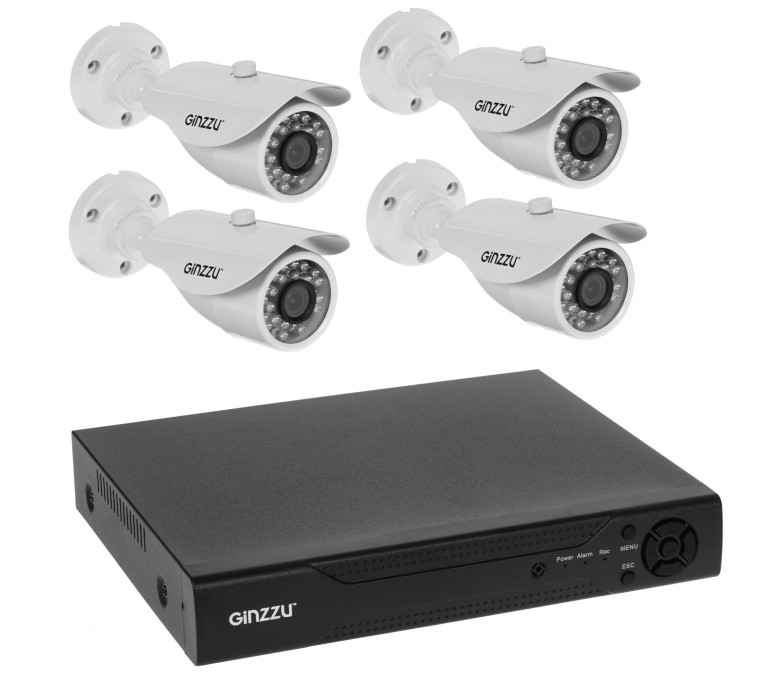 Комплект видеонаблюдения Ginzzu HK-448N, 4ch, HDMI, 4 улич. кам. 5.0Mp, IR30м