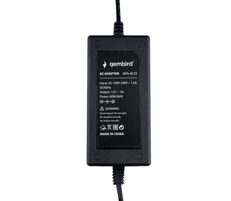 Блок питания Gembird NPA-AC32, 12В/5А, 60Вт, 1 штекер 5.5х2.5мм