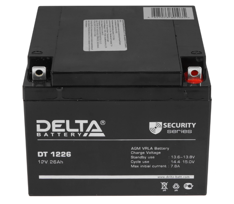 Delta DT 1226 с поддержкой напряжения 12 В произведен по технологии AGM. Она подразумевает применение микропористого заполнителя с пропиткой электролитом. Благодаря AGM выделяемый газ рекомбинируется до 99%.